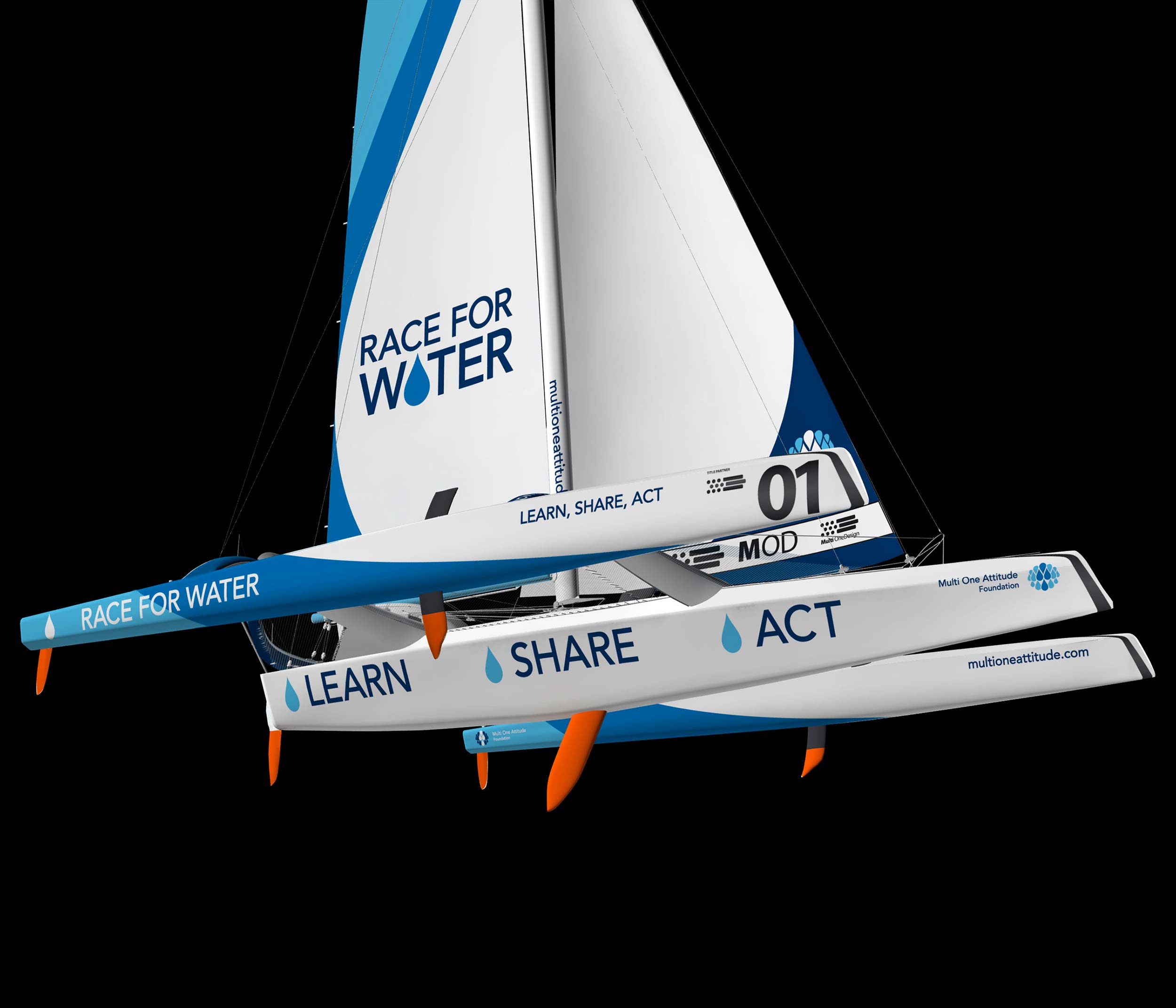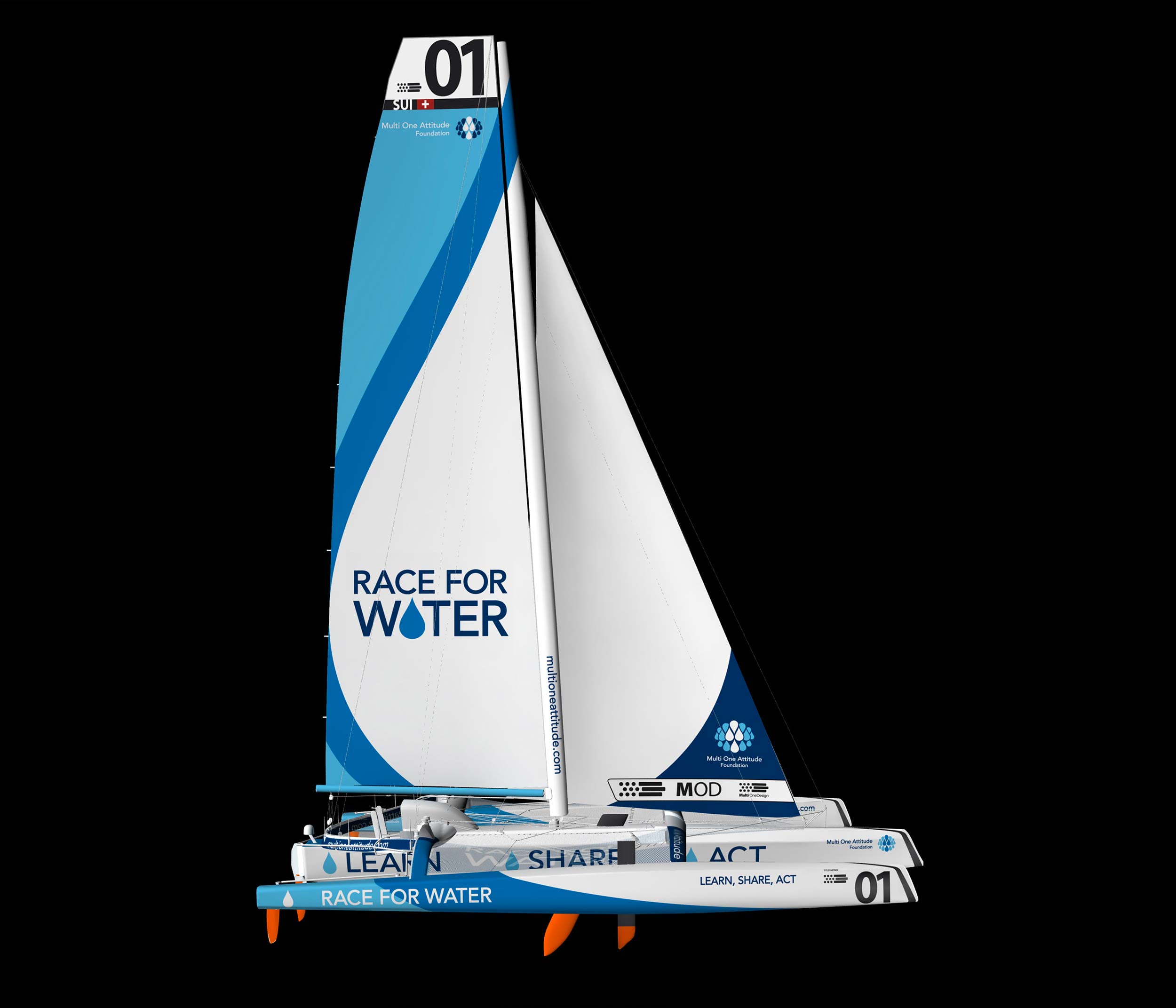 Design for the sailboat “MOD’70 Race for Water”, ambassador of the Race for Water Foundation (prev. Multi One Attitude Foundation), skippered by Steve Ravussin.